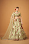 Pista Green Floral Embroidered Lehenga Set with Beadworks Embellishments