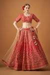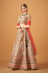 Exquisite lehenga is a masterpiece that seamlessly blends traditional craftsmanship with a modern aesthetic. Lehenga has meticulous embroidery work, creating a rich tapestry of patterns.